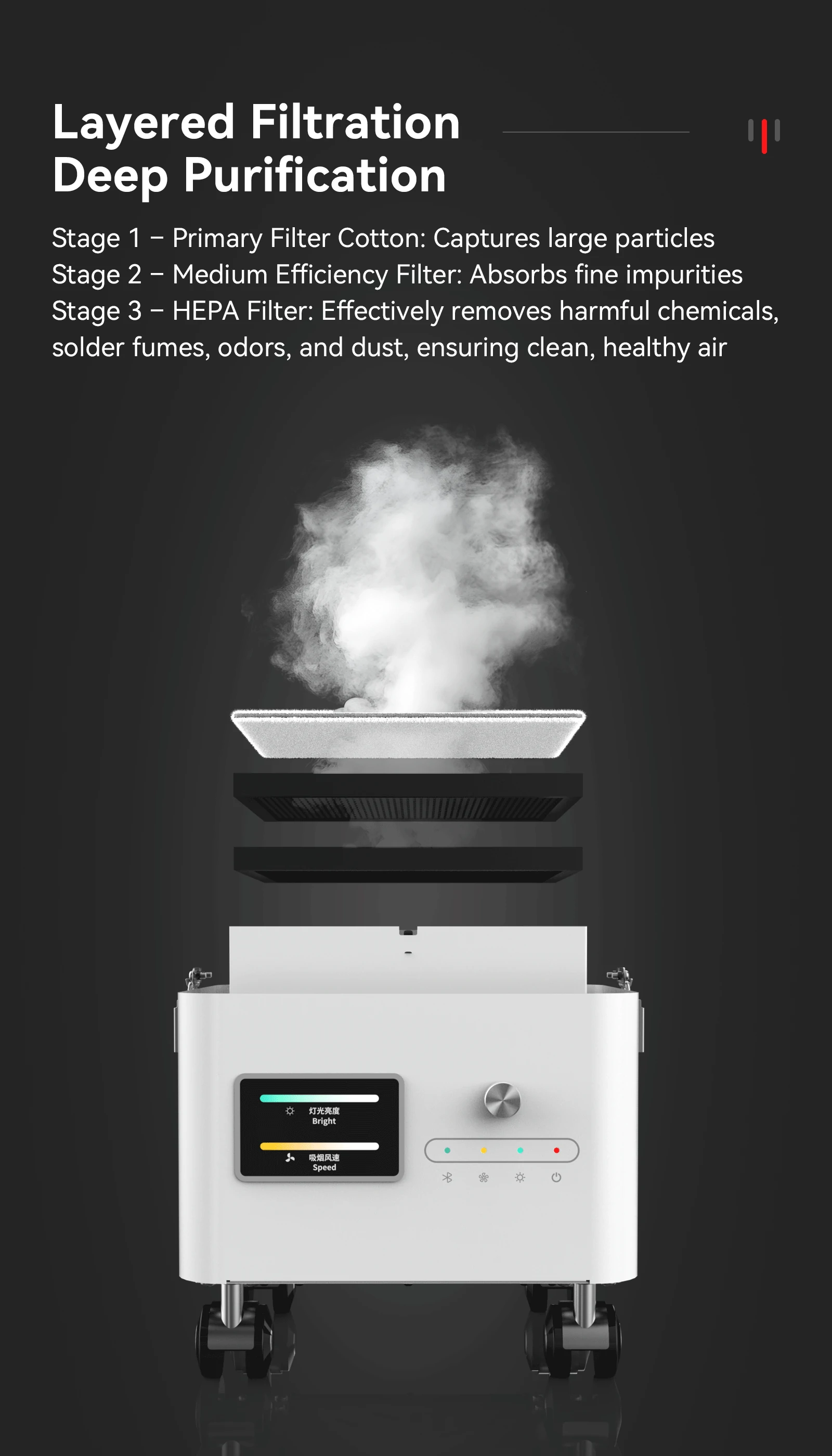 In electronic soldering and precision repair, fumes and dust are invisible enemies of focus and health. They may contain heavy metal particles, resin dust, and other harmful substances, posing a significant threat to respiratory health.