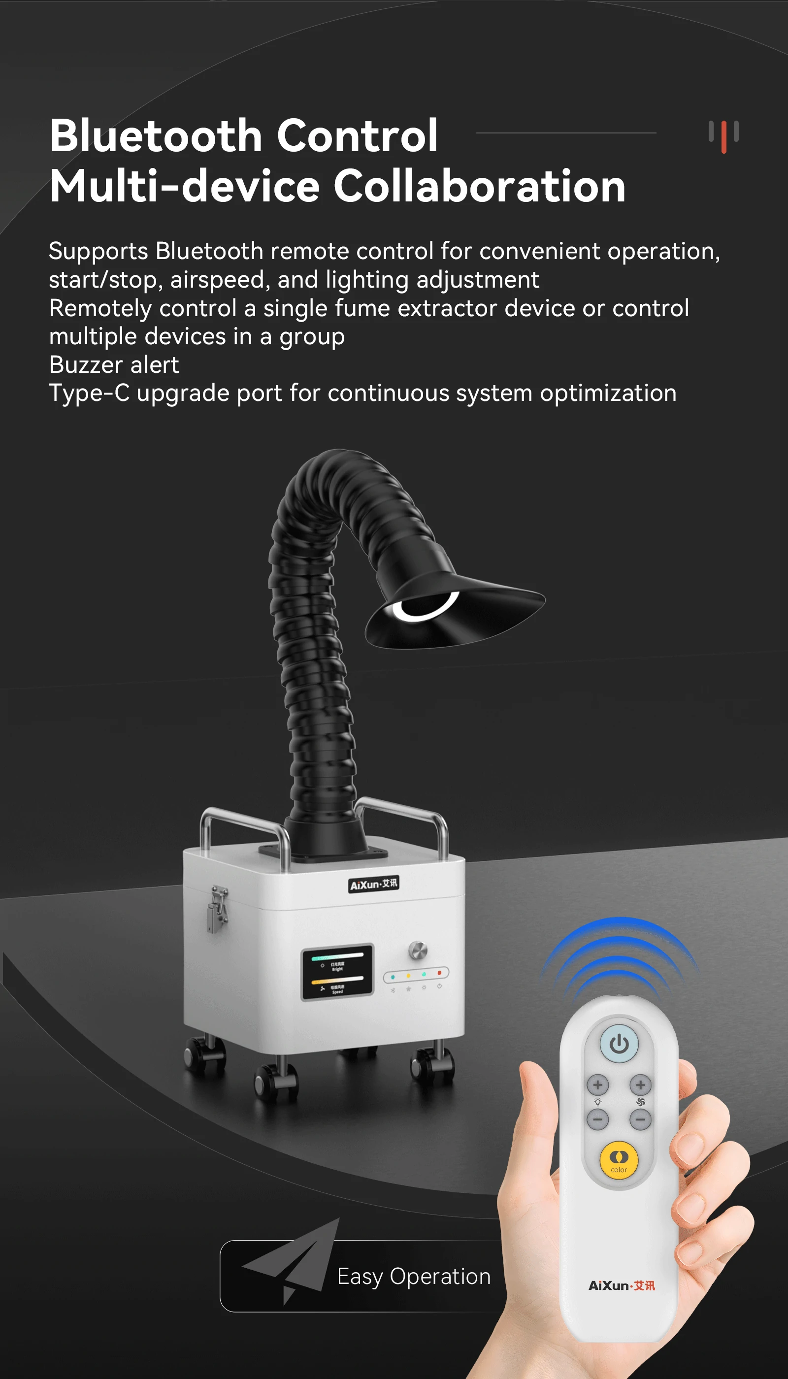 Intelligent control and multi-device collaboration allow for automatic response when linked to AiXun intelligent soldering station.