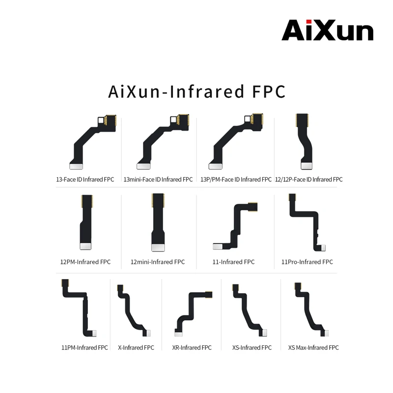 AiXun infrared FPC is specially researched for iPhone face ID and infrared repair and maintenance. The unique innovative design of built in pin header can help handling with the soldering problem of original infrared FPC. With this FPC in hand, maintenance technicians or mobile repair operators don't need to solder manually anymore, greatly improve working efficiency, save time and energy. Besides, the high precision solder pad with solder hole design helps make soldering more stable. In addition, the precise alignment of solder pins is also conductive to make the infrared repair easier. This infrared flex cable is a convenient tool when infrared is not working.